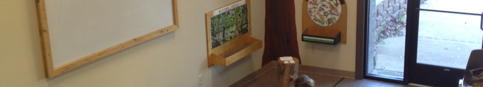 Learning about animals at the Carpenter Nature Center. Animals have natural adaptations that allow them to survive by escaping predators or by catching prey. The skeletons show animals with sharp teeth or flat teeth and Ariel was able to figure out which set of teeth ate plants or animals.